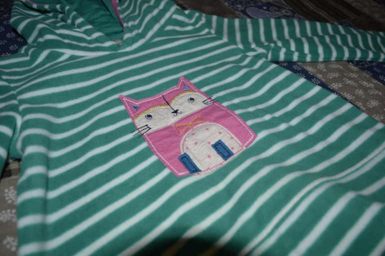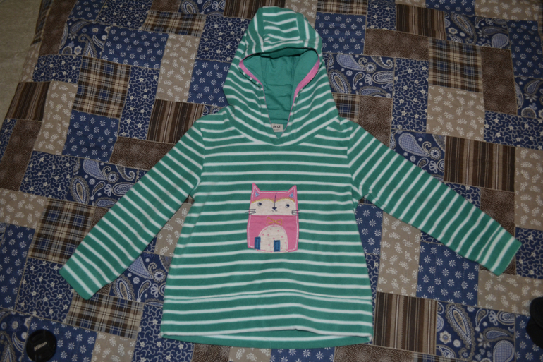И флисовая кофта с "котикум" р-р 3-4 года для старшей. Флис довольно плотный и мягкий, думаю она очень тёплая.