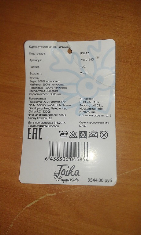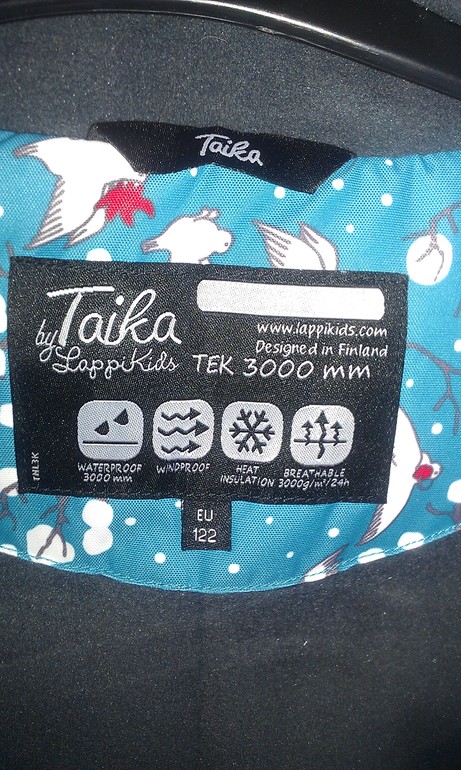 Размер 122, нам велик, отлично сядет на следующий сезон, утеплитель 300 грамм+флис по всей куртке, кроме рукавов, мембрана 3000. Полукомбинезон тоже Taika kids мембрана 3000, утеплитель 200 грамм.