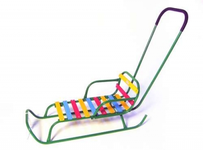 У нас похожие санки, но ручку мы сразу сняли и привязали веровочку, мне так надежнее, хотя минус - ребенок не на виду. Но мы редко на санках катаемся.
