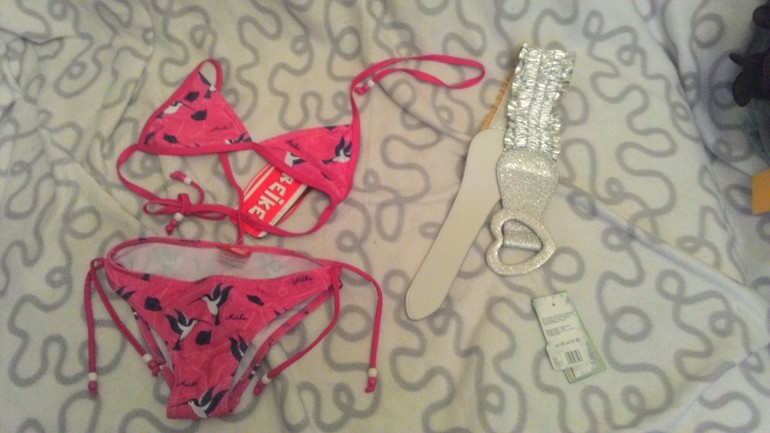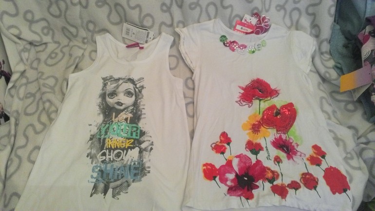 Еще пристрою кофту дя школы и купальник. Дочка даже мерить не стала с Вингс и рюшами не хочкет. Блузка 500 р. чистый хлопок, купальник 150 все на рост 128-140.