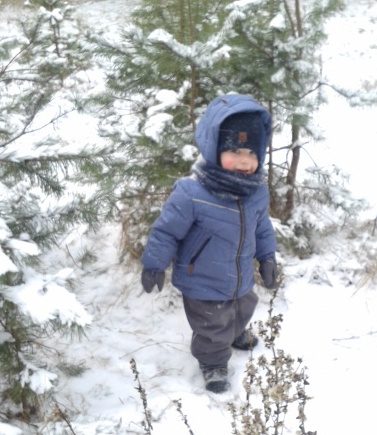 Единственный минусик в этом году, не повезло с шапочкой, на нашу голову уже нет шапок с завязками, пришлось пришивать пуговку, но все равно шапка сидит не плотно, сползает на глаза=(((
