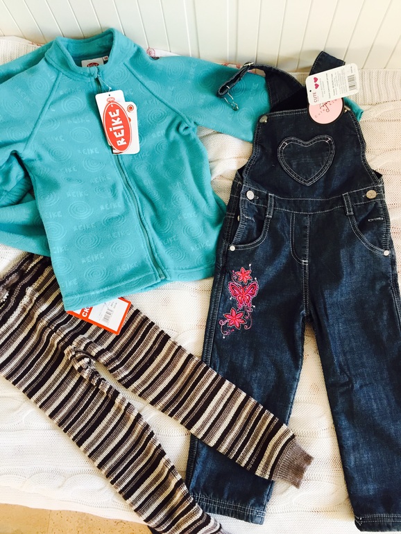 3. На мелкую - джинс полукомбез на флисе 500 руб., флисовая поддева рейке 730 руб., вязаные штанишки 130 руб.