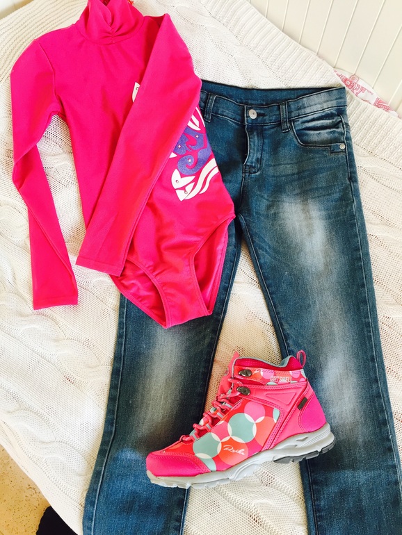 2. Старшей - купальник для танцев 230 руб., джинсы 250 руб, полуботинки рейке, вроде как водостойкие, посмотрим, 850 руб. Все на 9-10 лет, скидка такая же