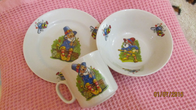 Принадлежности для кормления и кормящих мамПомогите найти. вот знаете,как бывает, любишь вещь одну и хоть ты тресни! и так хранишь ее,хранишь! и я купила набор посуды еще год назад сынульке. и он так ее любит. Ищем гномика на дне тарелочки всегда. и сегодня у меня выпала из рук мокрая пиалочка и разбилась. Вот до слез. покупала в Севастополе. брала набором, но там и все отдельно продавалось. Девочки, ну вдруг кто где увидит? перешлите мне, а??) оплачу заранее. вот фоточка всего набора
