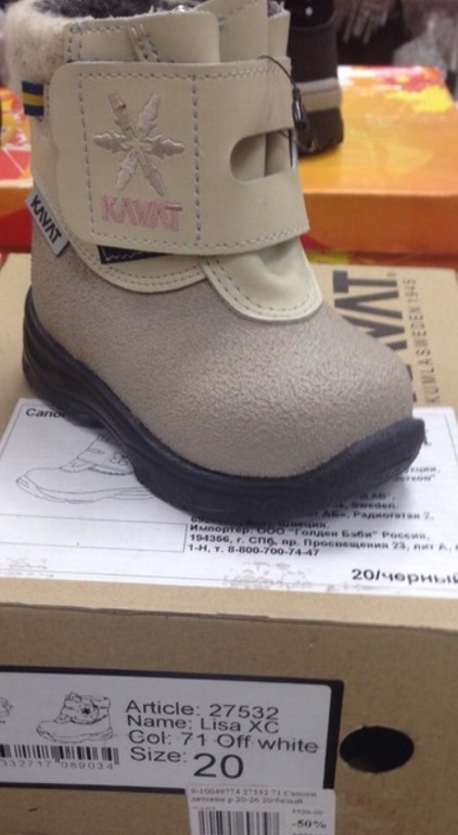 На кассе стояла женщина, которая хотела купить 5 коробок Каватов, на тех коробках, где цена была порядка 3 тысяч скидка не пробивалась, пробилась только на обуви с ценой порядка 6 тысяч! Я так поняла, что продавцы просто не успели наклеить ценники по 6 тысяч на обувь с ценой 3 тысячи, чтобы она проходила со скидкой. Женщина очень расстроилась и ушла, потом вернулась и сказала, что куда-то позвонила и ей сказали что скидка должна действовать на всю одежду и обувь, не знаю чем там дело кончилось, т.к. мы ушли.