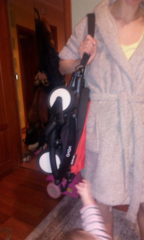 Выставка наших колясок (только хвасты)Всем привет.Моей малышке сейчас год и 4,у нас было 4 коляски,yoyo пятая.До этого у нас была априка для поездок в тц,но ребенку было не удобно в ней и я ее продала.И озадачилась поиском коляски.Критерии были следующими: Нужна была легкая,компактная коляска ,сейчас зимой для тц,а с весны уже как основная и соответственно для отпуска тоже. Она должна быть легкой,компактной,но в тоже время полноценной для ребенка.Обратила внимание на yoyo,съездила на савеловский,покатала ее,пощупала и пришла в восторг!!! Загорелось этой коляской,но ценник у нее на данный момент 31 тыс,кусается сильно.Смотрела б.у,но находила за 20-23 тыс.Почти уже решилась купить за 20,и увидела объявление о продаже коляски нужного мне цвета на другом конце России)))Ждала пока приедет неделю,ну вот долгожданная покупка прибыла.Я в восторге.Мало того что коляска сама по себе очень качественная,так еще и в идеале) Дочка у меня никогда не любила коляски,а из этой целый вечер не вылезала.Очень она удобна для ребенка и для мамы.Ход очень плавный, места много,сиденье глубокое.))