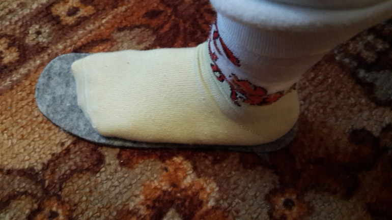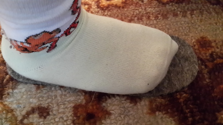 Там где 2 стельки вместе?Верхний 26 размер.Нижний 28 на осень холодную хочу-до морозов.26 от валенок-носим сейчас-туда колготки и носок шерстяной влезает и даже тонкий влез еще на морозища.Но 25 размер нам впритык-только если с колготкой.