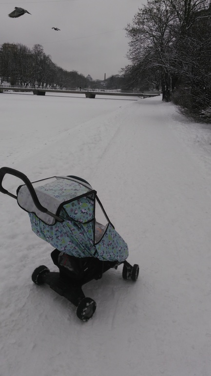 Пользуемся нашей красоткой почти год. Я в восторге! Мы пережили все времена года. Многих интересует, едет ли она по снегу? Да, едет!!! Мы пользуемся ей и сейчас зимой и все отлично. Ребенок в зимнем комбезе все еще помещается.