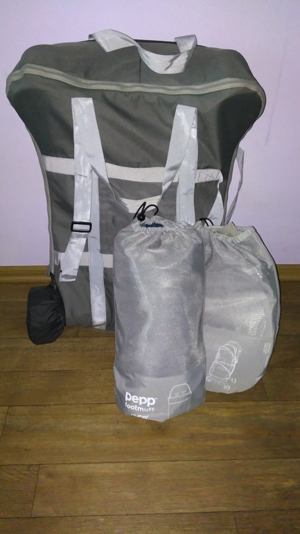 В полную комплектацию еще входит погодный модуль: москитная сетка и дождивик. Очень необычные, и правда как корабль, одевается, конечно, неудобно. Сама коляска складывается в сумку для перевозки, можно носить на плече, можно как рюкзак.
