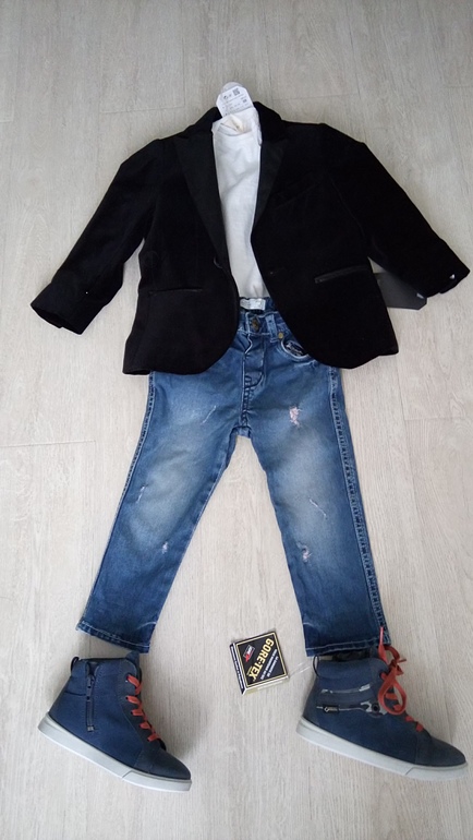 Пиджачок бархатный. Давно хотела сыну такой. И вот на распродаже и нашла) Стоил 4000, на ценнике стояло 2000 тыс., а на кассе пробилось вообще 1600) В общем мать довольна!