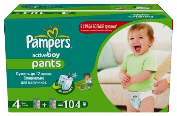Трусики памперс Pampers Active Boy 4 (9-14 кг) 104 шт. 1190 рублей