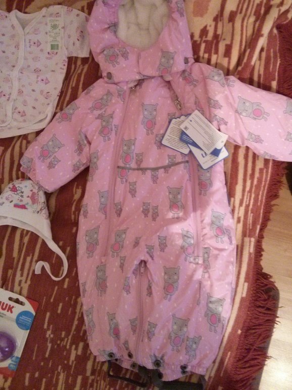 Я покупала синтепоновый комбинезон полегче, выписывались в одеяле и конверте - мне подарили, а гулять ходить начали все равно не с первого дня, а уже в начале апреля только вышли, поэтом просто синтепоновый тонкий комбезик, если холодно - одеялком могла накрыть. В августе дочка уже не влезла в 68 размер.