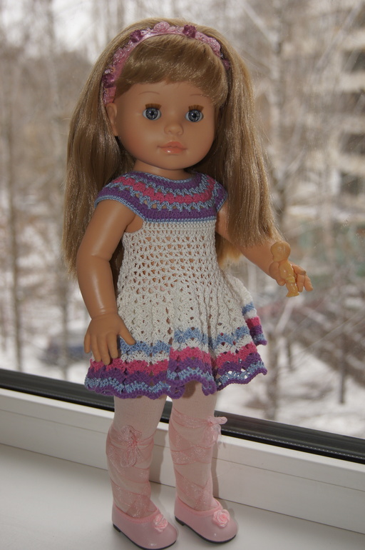 Далее бабуля решила вновь порадовать внученьку и прикупила такую милаху) Назвали ее Кирой. Обаятельная малышка, но играть с ней не очень удобно, тк ножки-ручки туговато поворачивать.