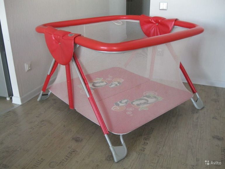 У нас такой зеленый. Уже второй ребенок в нем. Как новый. Очень удобная "дверка" на замочке. Сверху делали "крышу" и получался домик у старшей).