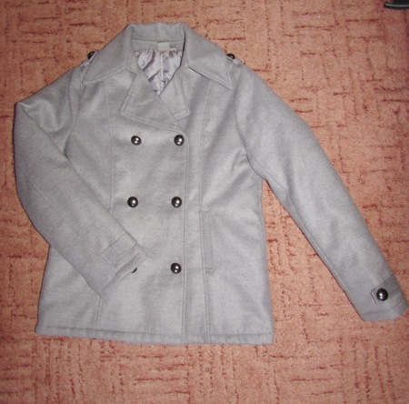 7. Утепленное пальто р. 12А, взяла последнее в сером цвете, 250 руб. (не удержалась), в черном цвете было полно.