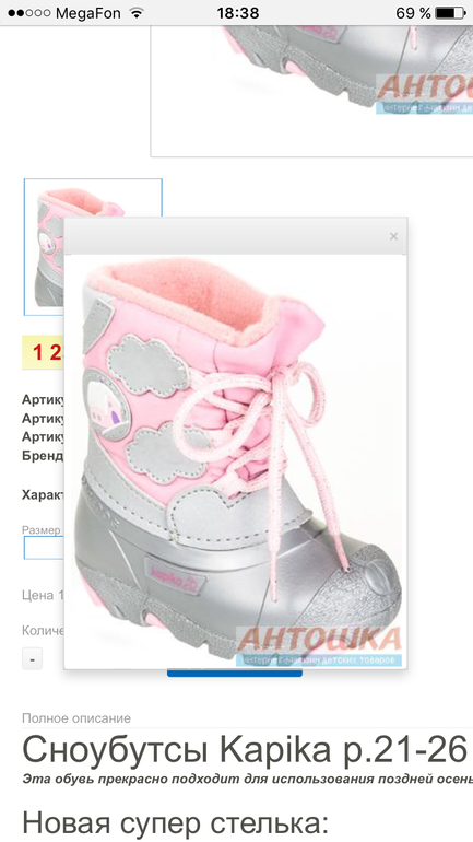 Детская обувьнам 1,1 только начали ходить.спим в коляске потом чуть-чуть гуляем,конврта нет.до хождения одевали бодик,тонкие носочки,шерстяные носочки и сверху бахиллы от конверта на овчине-ножки не мерзли.сейчас нужны сапожки,но не знаю что брать на Московскую зиму-весну и будет ли дочка лужи мерить в этом возрасте-я запрещать не хочу)) размер 21,но не полный,где-то 12,5см.понравились лемиго,но размер еще не дотягиваем.на авито много куомы,но отзывы противоречивые.еще демары понра.но говорят колодка плохая,или для нас пока непринципиально...в общем ахтунг))) как вам такие варианты?