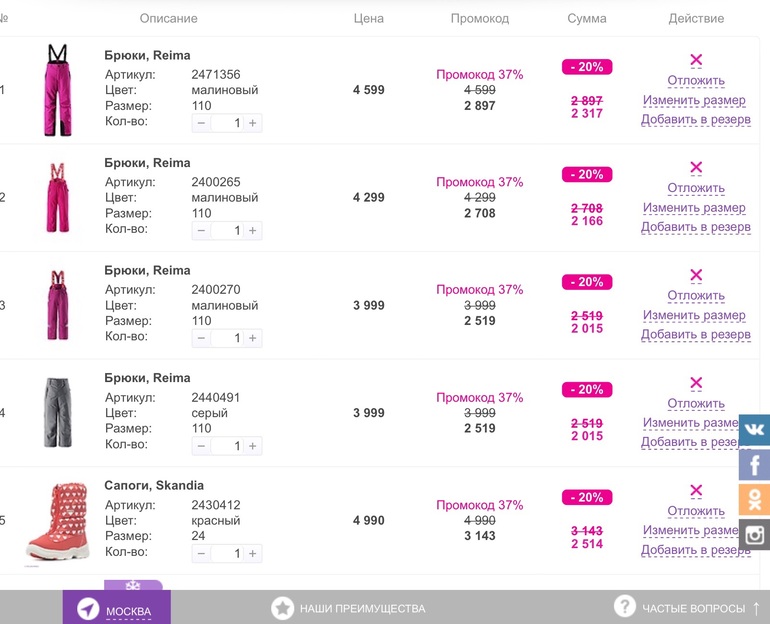 Распродажи. Скидки. Акции.подскажите, есть ли где скидка на штаны рейма зима на рост 110 черные или серые.