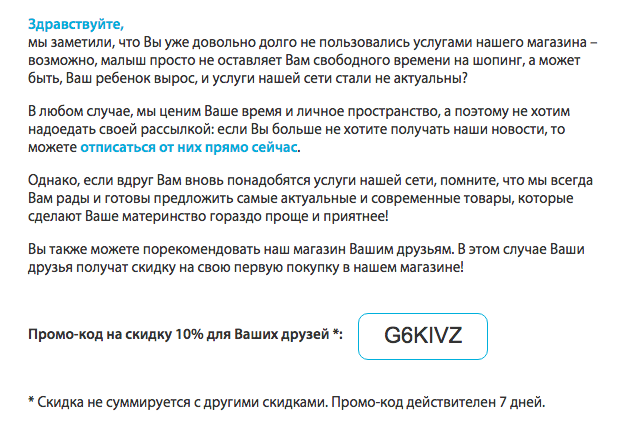 Личные скидки ( не распространенное)Снова и снова) Прислали код "для друзей" на первую покупку. Действует 7 дней (сегодня 18 февраля, то есть наверное до 25 февраля). G6KIVZ