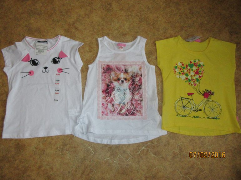Заказывала футболки 5-6 лет (110-116) на наши 109 см с небольшим запасом, как раз на лето) платья 6-7, но тоже с небольшим запасом на лето - по колено сейчас примерно=)