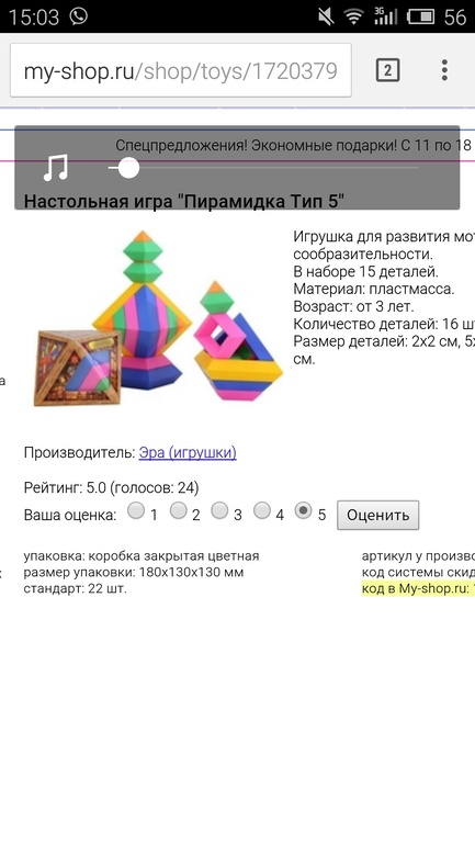 У нас такая, брали в май-шоп, сначала взяли одну пирамидку, потом докупили вторую.Идеально 2-3 шт.Доча играет с 2лет, очень нравится. Приходящие в гости детки особенно постарше тоже зависают над строительством. Берите не раздумывая!!!!