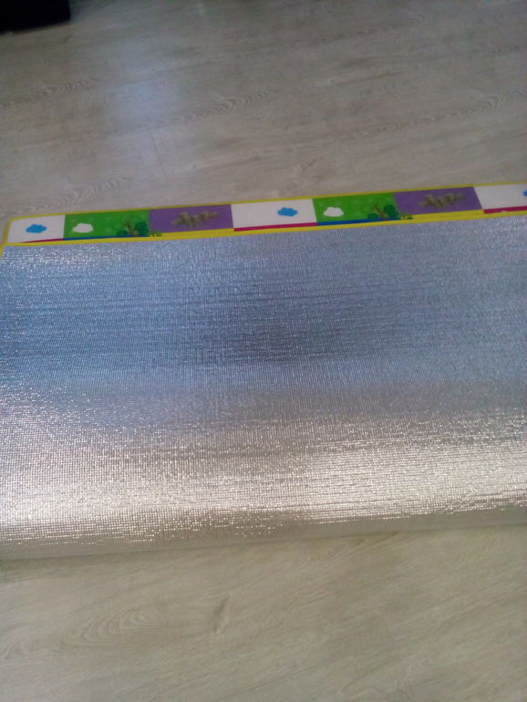 У нас вот такой коврик. Легко моется и убирается. С обратной стороны фольга поэтому ещё тепло на нем сидеть.