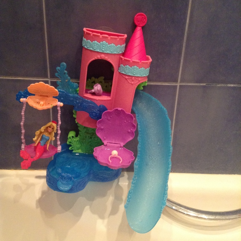 Рисует карандашами для ванной, русалочка плавает, столик от полесья, на него удобно игрушки ставить, замок русалочки