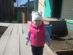 Это мы в мае у бабушки в деревне. В куртке уже жарко, просто в кофточке холодно, а с жилеткой самое оно.