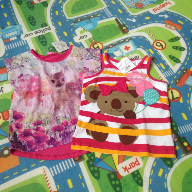 А эти 2 футболки фигня. В пандой качество ужас. С оленем качество хорошее, но эти блестки.. Муж сказал Порнуха. Вобщем, на дачу...