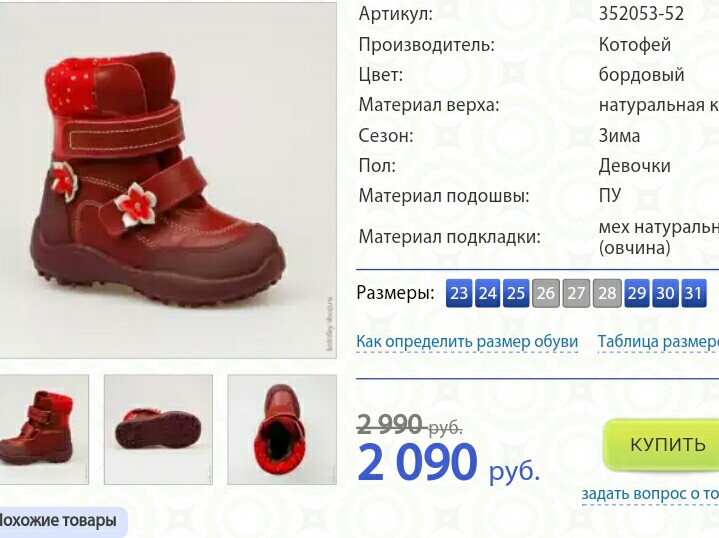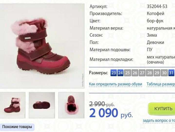 У нас такие сапожки как а первом фото только розовые. Суперские да еще и с не убиваемыми мысами. Цены очень кусачие, с учетом что нога растет быстро. Мы свои только осень поносили и до начала зимы, на весну уже не хватило. За такие деньги и на такой короткий срок лучше б/у смотреть. Знала бы однозначно не заморачивалась бы. А валенки действительно супер! У нас были как на последнем только фиолетовые. Валенки рулят! :-)))
