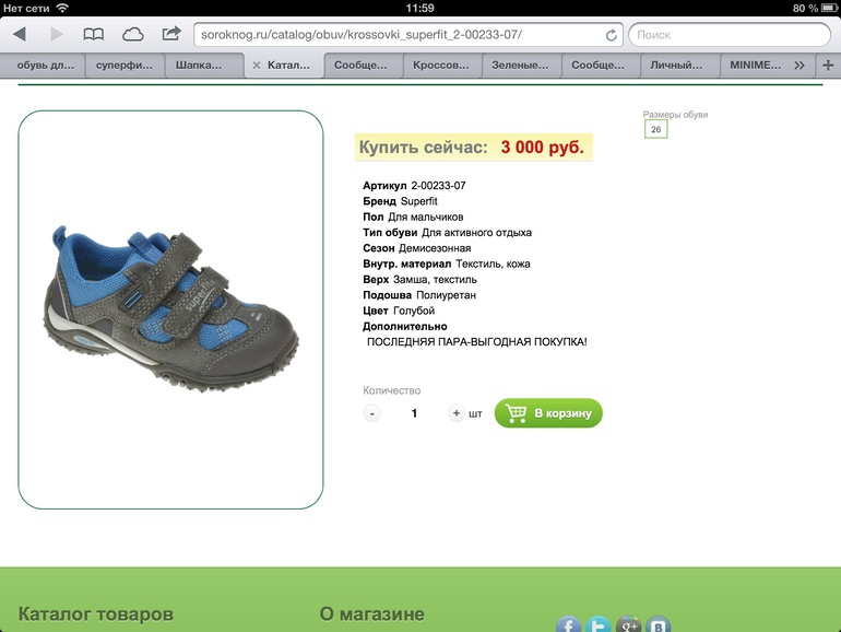 Детская обувьВообщем нужны кроссовки на весну и холодное лето!!! Все время искала коженные, но то цвет не наш, то модель не та (шнурки и т.д.) да и цена на многие просто космическая!!! И вот кажется нашла! Брать или нет! Может пока пишу и уведут их!))) вообщем Cуперфит но без системы gero-tex! Продавец сказала что они сухую погоду! Вот я и думаю, брать или поискать что то еще? Цена-3000, нормальная? Девчонки, кто носит суперфит, подскажите, на холодное лето и на весну как они? Жду очень, очень!