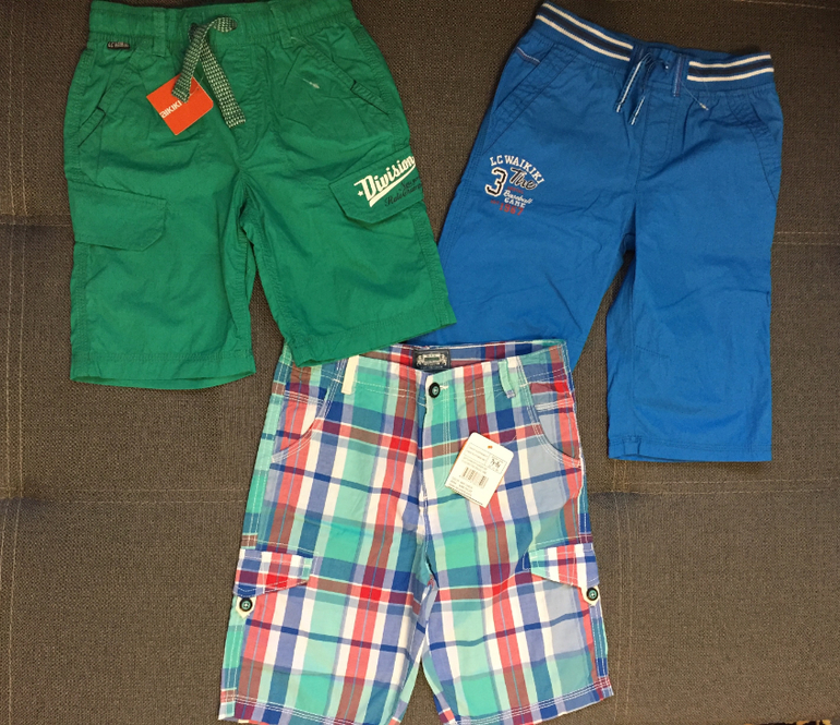 Ну и шорты. Зеленые и синие 6-7, в клетку 7-8. Зеленые на это лето отлично будут - на нашу сладкую попку в самый раз, а вот синие большие... Так что либо к зиме в сад, либо на след год. Но моделька мне нравится - удлиненные - коленочки прикрыты. Шорты легкие - прелесть в общем. Ну а в клетку естественно велики))