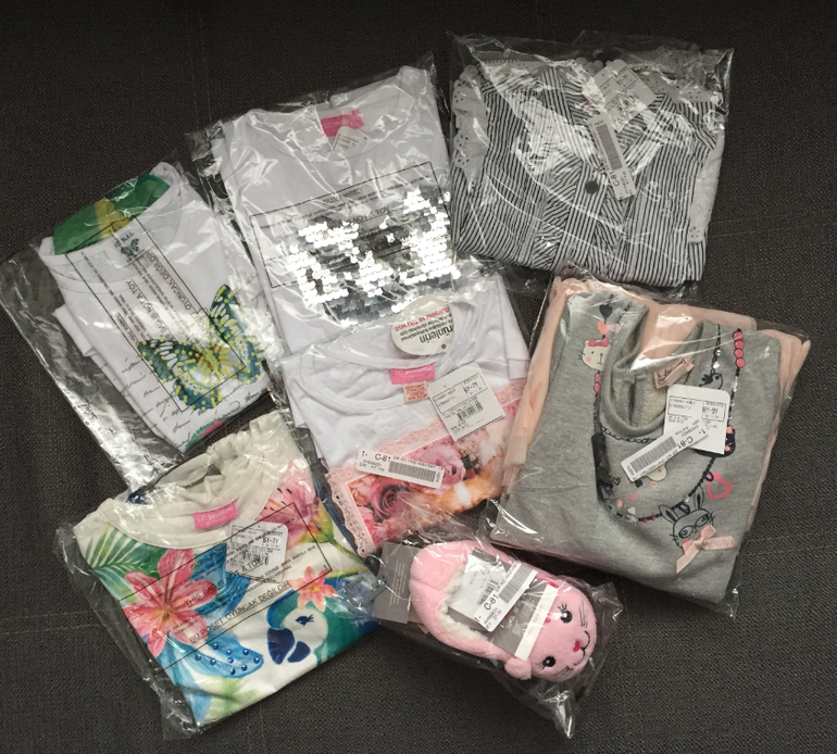 А здесь немного девчачьего))) Для крестницы и дочки подруги) По размерам 6-7, но опять же футболки все разные и на сейчас.... Платье с запасом, а вот с тапульками в пролете - р-р 27-30, а на самом деле меньше(((