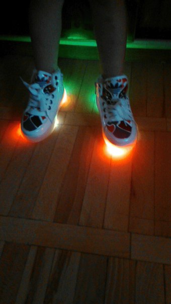 Детская обувьУвидела на девочке кроссовки беленькие , при xодьбе вся подошва горит (не отдельные элементы а именно вся подошва}