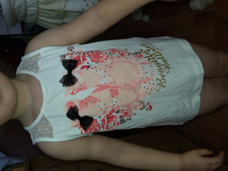 А мне майка эта не очень понравилась по качеству, какая-то синтетическая на ощупь(