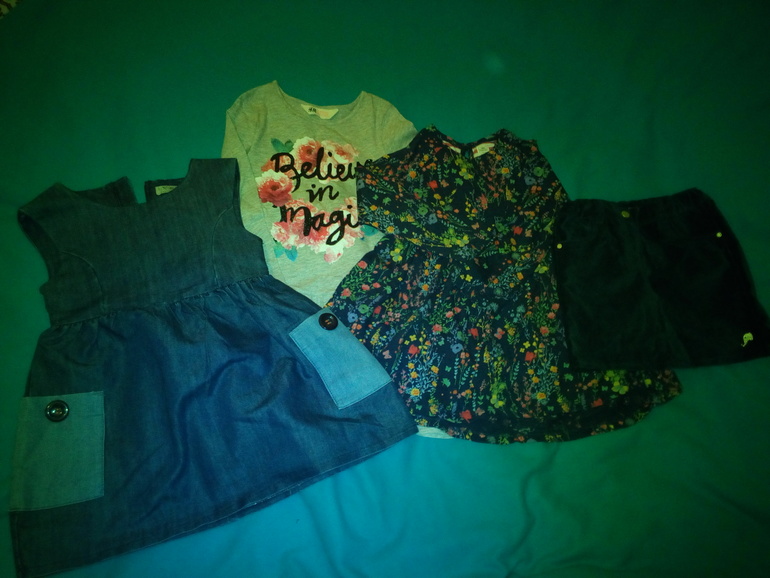 Юбка одна есть на фото,вторая джинсовая,но ее дочь куда то дела,поэтому она не вошла в опись,так сказать)Шорты на фото есть,есть еще: одни очень похожи-разница лишь в отворотах,поэтому не стала фотографировать, а пара с прошлого года еще как раз,но их тоже не стала). А вообще с леггинсами 3/4 можно носить.