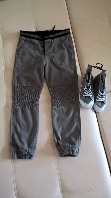 Садятся очень хорошо, с кедами смотрятся отлично. Штанишки - 799 р., кеды - 699 р. Бюджетненько однако)). Штанишки такие есть и в коричневом цвете... На очень худенького - в талии будут широкими, т.к. в поясе шнурок.