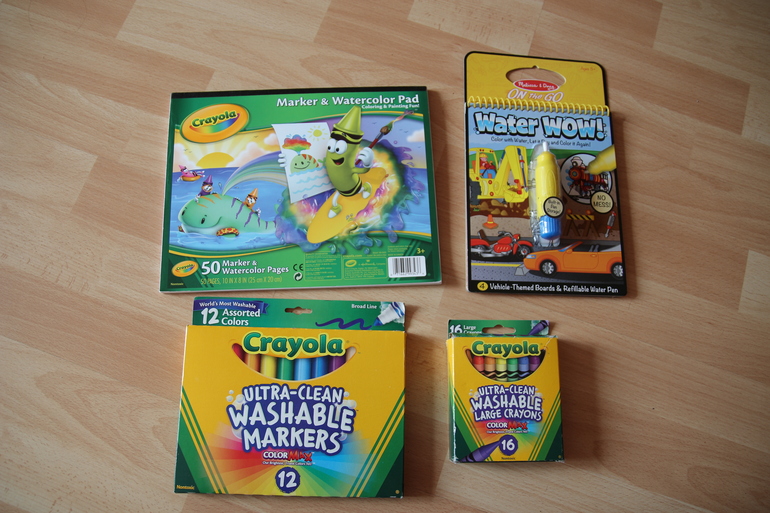 Скоро пора каляк-маляк, думаю, с года уже будет актуально, поэтому мы озаботились покупкой фломастеров и карандашей. Все смываются водой, что будет ооочень актуально. Другие даже не собираюсь покупать.