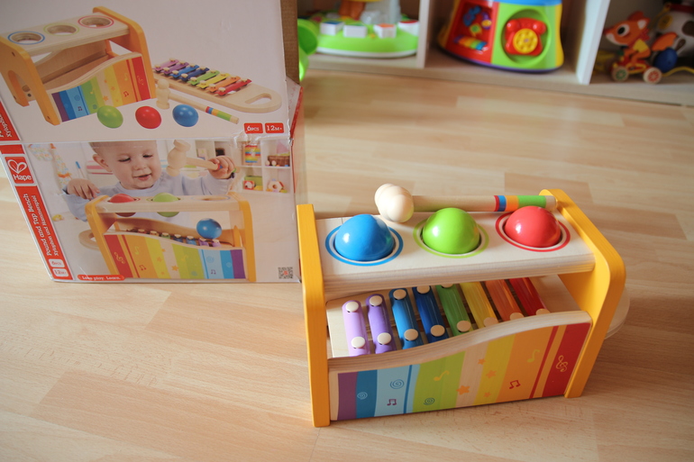 Этот ксилофон с шариками, честно признаюсь, купила лично для себя. Hape и звук это моя слабость) Но она такая классная, эта стучалка, думаю, Кит ее потом тоже оценит