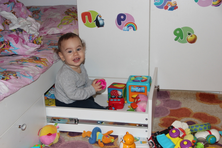 В ящики вмещается нереально много игрушек, выдвигаются они полностью, что очень удобно!