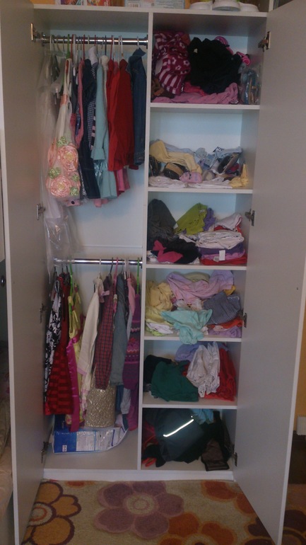 Шкаф вмещает весь сезонный гардероб дочерей:) А это не мало:)