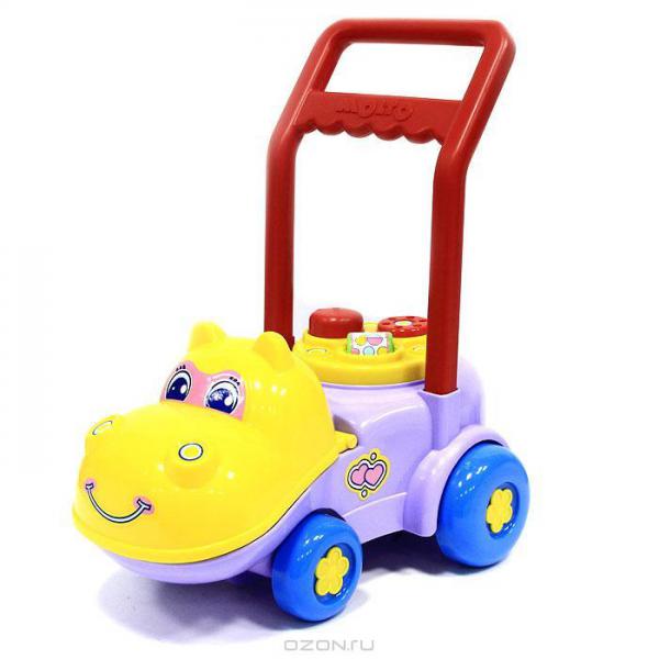 у нас был такой бегемот, особо ходить не учит, он уезжает вперед и можно носом клюнуть.