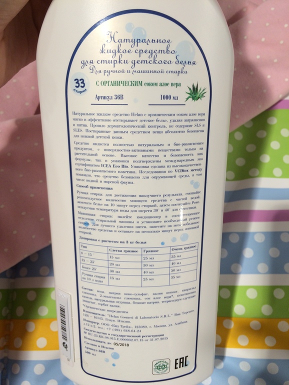 Косметика и гигиена.Ванночки и горшки, шампуни, средства для стирки и мытья, личная гигиенДолго искала безопасное и хорошее жидкое средство для стирки детского белья. И я его нашла. Им оказалось жидкое средство итальянской марки Helan из детской серии Linea Bimbi.