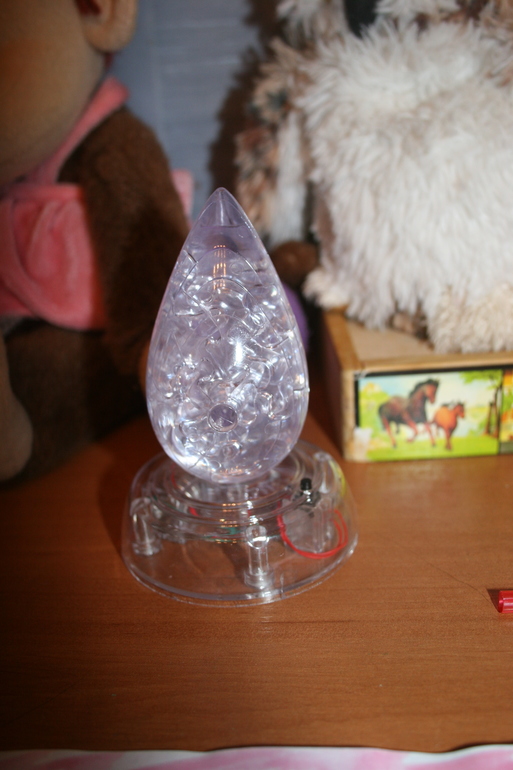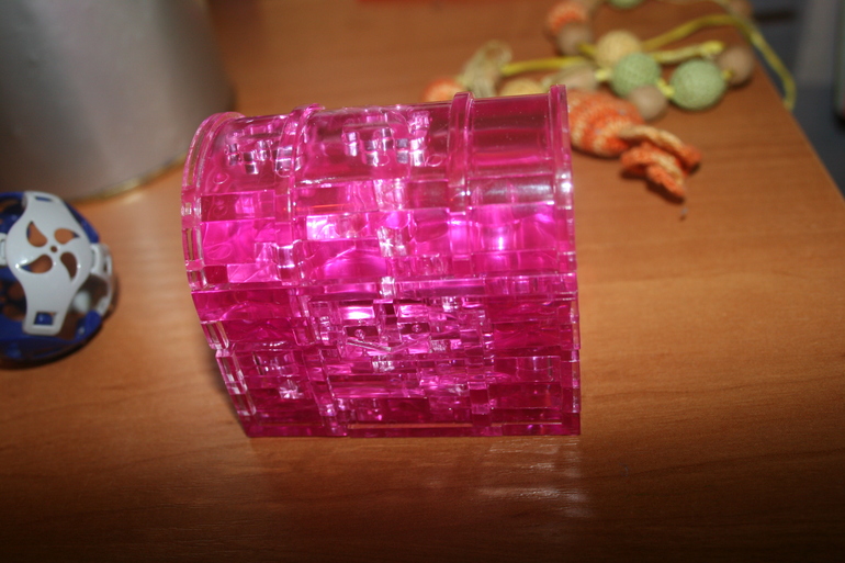 Сундучок - моя первая проба. С него начинала знакомство с 3д-кристаллами. Неудачно - ключики случайно выкинула ,а без них он не открывается. Потянула крышку сильнее - сломала. Но ребенок и так играется. Подсветка, почему-то, не заработала. Несмотря на блин комом, именно сундук вовлек меня в это дело. Собирала долго, тяжело. Очень хотелось добиться своего. Муж обещал задаривать меня такими игрушками)) Сундук еще один обязательно приобрету.