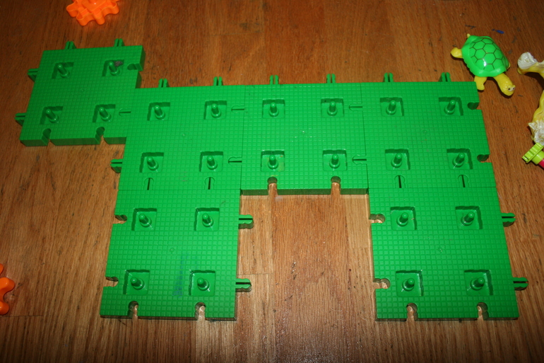 Пазловые основы крепятся друг к дружке только вот так, исключительно в одной плоскости. Например, кубик из них не соберешь (Quercetti за возможность различного соединения +5 в карму))).