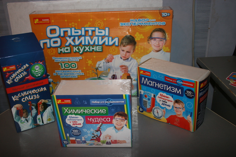 "Опыты на кухне" и "Магнетизм" еще не юзали. Активно используем "Химические чудеса" и почти создали слизь - она у нас получилась пупырчастой))).