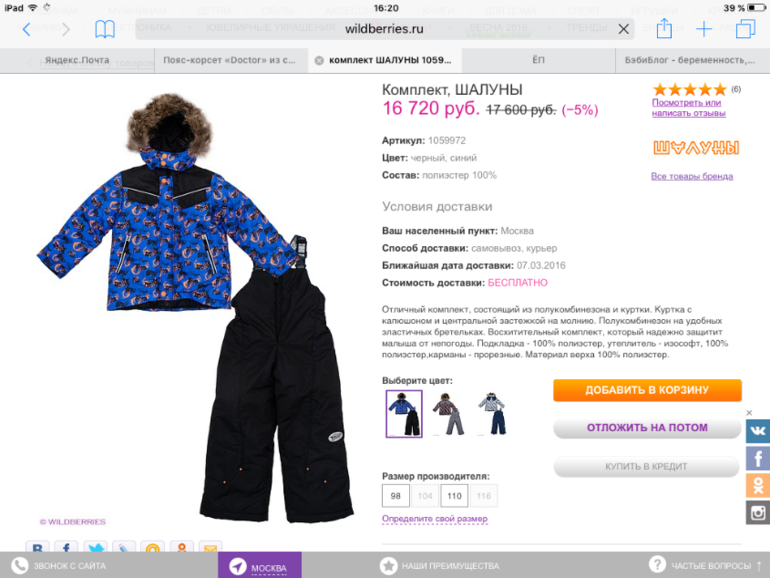 В магазине зимний комплект одежды Российского производства стоит 16 тр, причём не сезон уже, да и цена ему в три раза дешевле в других местах!