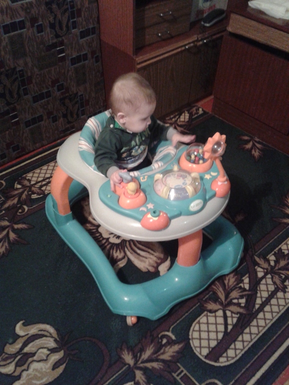 А мы в ходунках...сейчас отлично ходит сам! ))