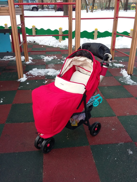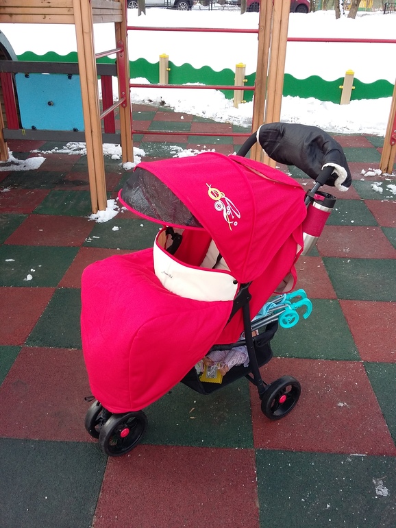 Через несколько дней после покупки был безумный снегопад ночью, а утром мы шли в бассейн. Я прокляла все на свете. Дорогу, обычно занимающую 10 минут мы шли полчаса и я была как взмыленная лошадь. Снегу почти по колено, никто ничего не чистит, везде тропинки, которые проделали люди. Коляску чуть ли не на себе перла. Плюс после этого похода передние колеса стали скрипеть, как телега! И тут я психанула, выставила ее на продажу. В это время два дня ездили с мужем по магазинам искали другую коляску. Так и не нашли. Оставили эту.