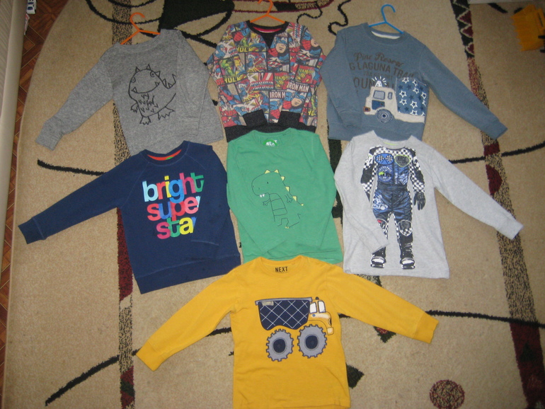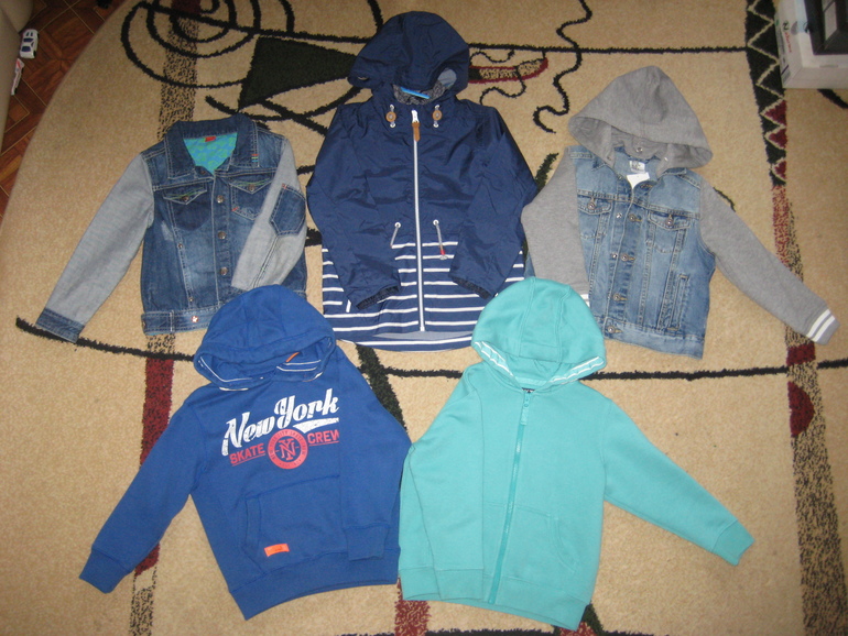 Начну с курточек и толстовок. Размеры 110 и 116.