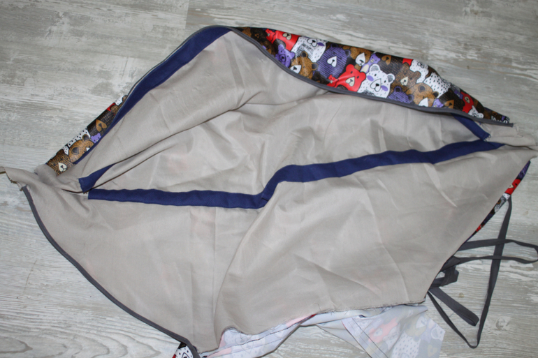 вот тут видно, что я сделала с внтуренней стороны хлопковую ткань, и "дорожки" для дуг сделала из плотной джинсы.